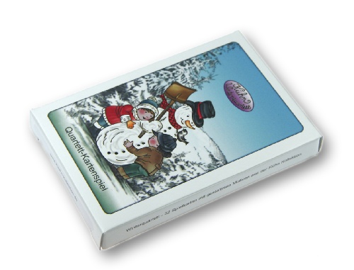 Das exklusive Winterquartett enthält 32 Spielkarten, die mit Original-Motiven aus der der Kühn-Zinnfigurenwelt (www.kuehn-zinn.de) gestaltet sind.